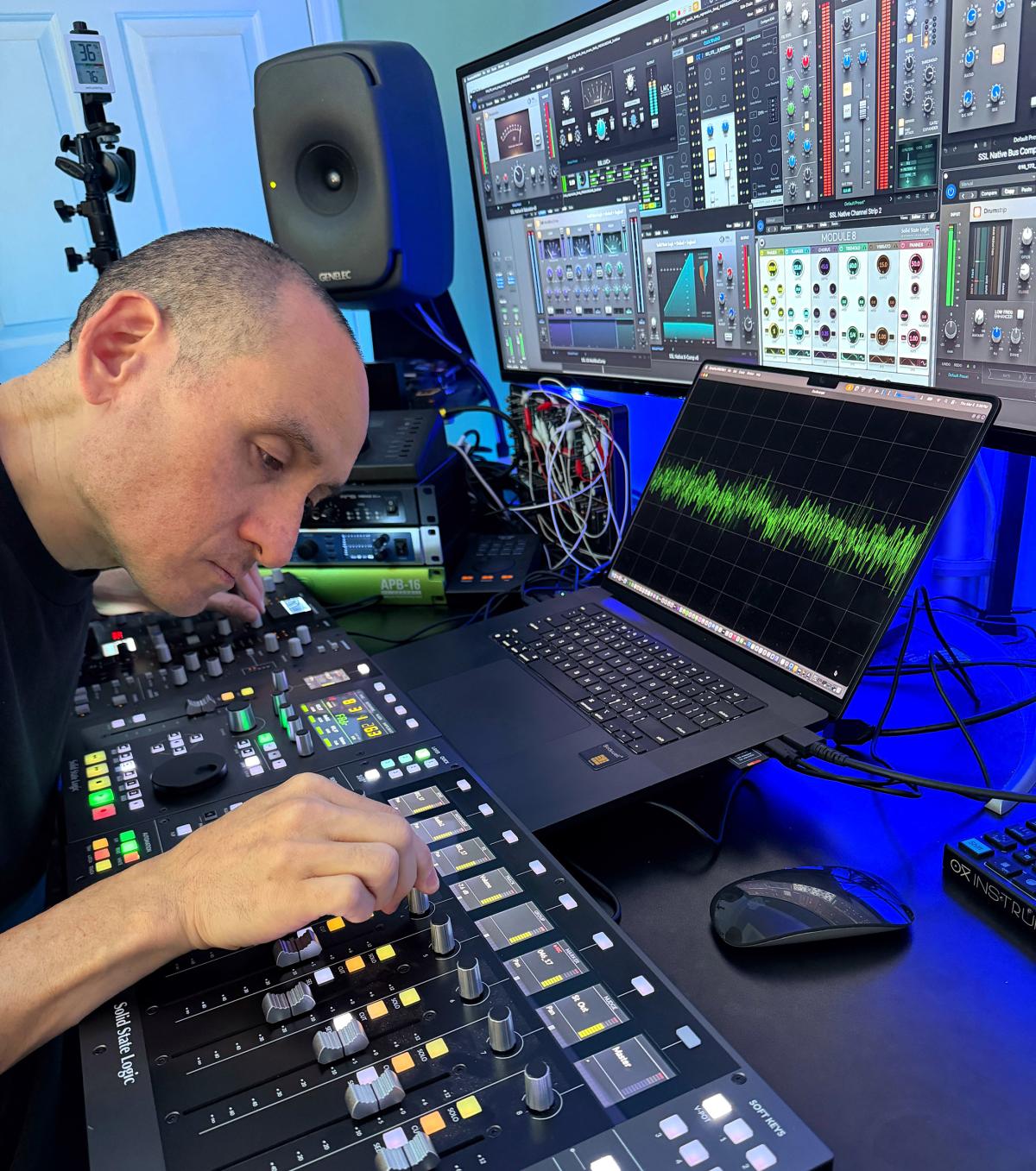 Devine prefers a hybrid workflow that enables him to also integrate analogue outboard equipment such as his SSL Fusion processor and THE BUS+ compressor. “But I also like working in the box, to take full advantage of that workflow. So this system is really the perfect hybrid combination to bring those two worlds together into a mixing session, whether I’m doing a regular stereo mix or working in Dolby Atmos.”