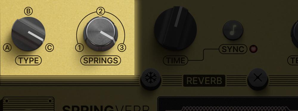 SpringVerb provides deep creative control over how the reverb is expressed. For instance, users can smoothly fade between single, double, and triple-springs. The more springs, the denser and complex the reverb will become. Meanwhile, the Time knob controls decay length, with the Sync button allowing it to lock to tempo-based values when desired. The Freeze button stops new input and will create an infinite reverb tail until it is turned off.