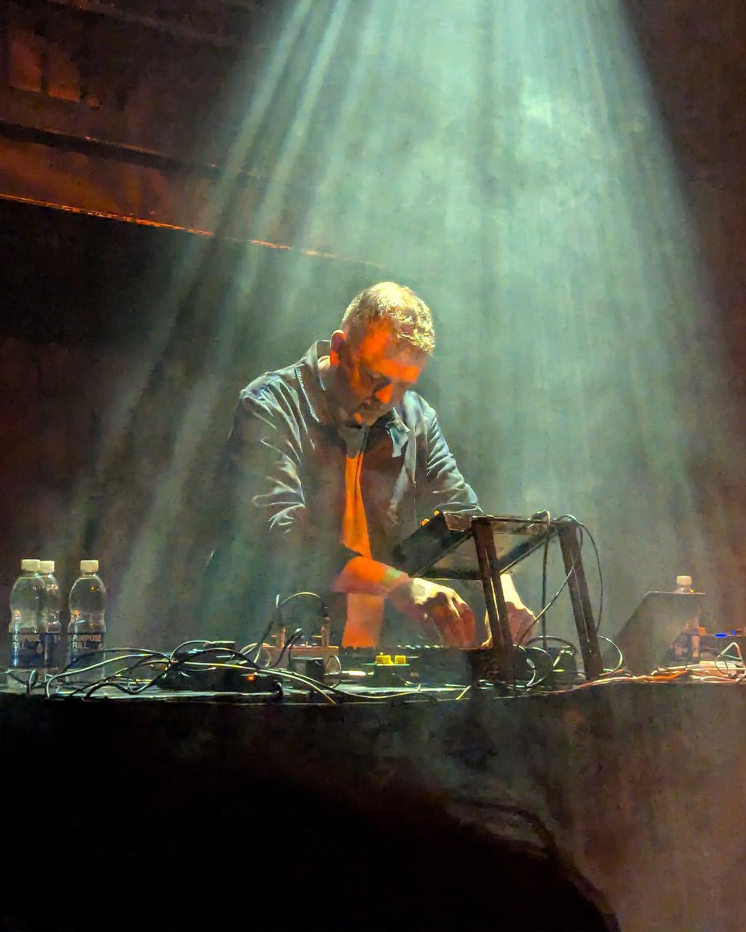 The ‘303’, dub siren, and Bugbrand PT feed into the first three inputs of the SSL 12 interface with 4K mode engaged for extra presence, he says, adding analogue colour enhancement inspired by SSL’s 4000 series console. The SSL 12’s outputs are routed into Ableton Live. “I just plug stuff in and go, basically. I set the levels visually with the gain and output knobs. These are well coloured, so I can see where they are in a dimly lit club or stage where there’s a lot of lighting FX. When you are busy performing, that is a bigger plus than you may