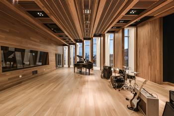 Initially conceived in a conversation with Albany resident Charles Goldstuck, entrepreneur and investor, currently founder and co-chairman of Hitco Entertainment, and Christopher Anand, managing partner of Albany, the studio was designed as a place where musicians and creators can be inspired to do their best work and to give the more than dozen music professionals with homes at Albany the opportunity to both work and live within the community.
