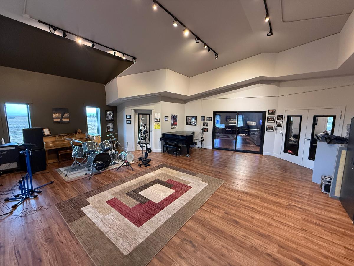 The couple, who have known each other since high school, lived and worked in New York for 46 years before relocating their studio to Colorado in 2012. Several years ago, inspired in part by the famed Caribou Ranch in Colorado, they began planning a destination studio that could similarly attract major artists to the Front Range of the Rocky Mountains. The 2,100-square-foot recording studio, designed by renowned acoustician Sam Berkow, incorporates windows throughout the spacious tracking space and control room that offer expansive views of the mountains and herds of pronghorn that roam the 35-acre property.