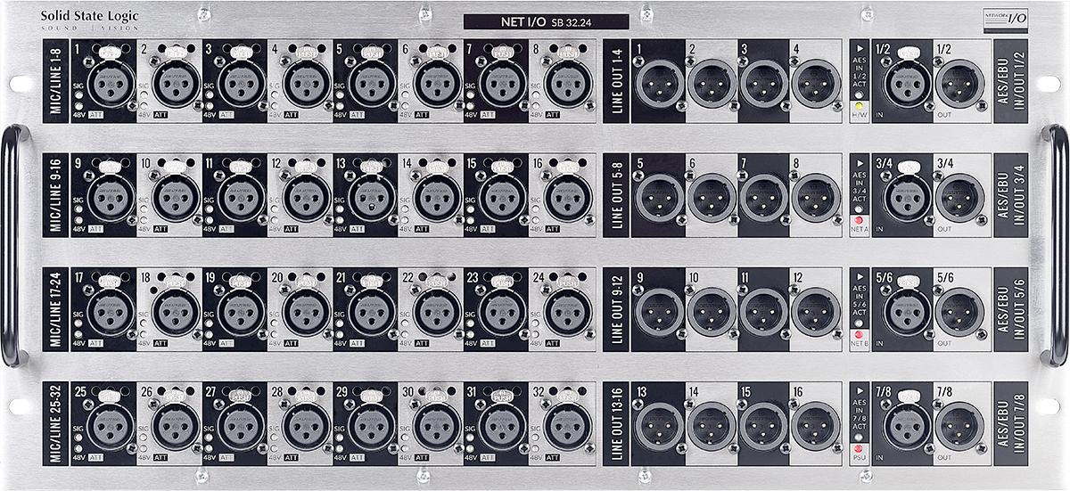 Designed for use on any Broadcast studio floor, venue or recording room, SSL Network I/O Stageboxes allow easy deployment of Mic Pres and Speaker feeds where needed. Network I/O’s plug and play features allow devices to easily be moved, even between locations and retain routing and settings if required. All units can be remote controlled via System T broadcast consoles and control interfaces, SSL Live consoles, and the SSL Remote Stagebox Application. There are four different models available; SB8.8, SB i16, SB 16.12 and SB32.24.